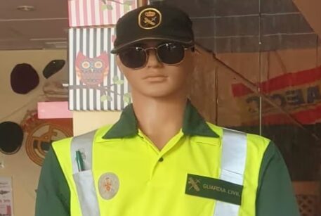La propietaria del bar, Lori, colocó el muñeco en su terraza con motivo de homenajear el 12 de octubre a la Guardia Civil y ya no lo quiere quitar porque se ha dado cuenta de que gracias al muñeco la gente pasa más despacio.