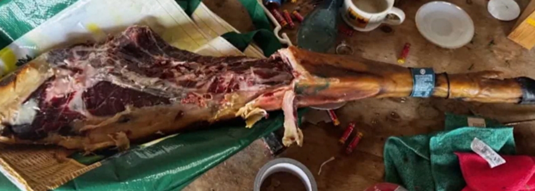 La presunta autora de los hechos es una viaje conocida para los agentes del municipio ya que había sido responsable anteriormente de delitos similares. Por este motivo, fue relativamente sencilla su localización. Lo sorprendente llegó una vez acudieron al domicilio de la mujer. La Guardia Civil comprobó, tras registrar la vivienda, que efectivamente se había llevado el jamón. La mujer alegó que lo devolvía, pero con un pequeño detalle: estaba a medio comer. La propia Benemérita ha distribuido la imagen del jamón de bellota, tal y como lo devolvió la sospechosa, que está siendo interrogada.
