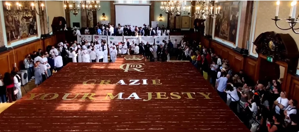 El postre estaba colocado en filas. En total 30 filas de 8 metros cada una colocados como el mítico “snake” del Nokia 3310. El anterior record estaba en 273,5 metros. Para superar el record la receta ganadora contiene más de 50.000 bizcochos de soletilla, más de 3.000 huevos, además del café, mascarpone, azúcar y cacao correspondientes. Servía además de agradecimiento personalizado al rey Carlos III y a la reina Camilla, ya que el postre ha contado con la inscripción Grazie your majesty (Gracias sus majestades) en letras doradas.
