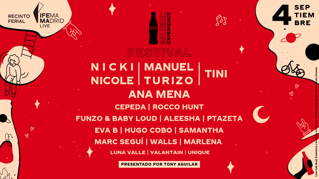 ¡Vuelve el Festival Coca-Cola Music Experience 2021! La cita más especial del calendario tendrá lugar el 4 de septiembre en el recinto de IFEMA de Madrid, donde disfrutarás de música en directo adaptándose con aforo reducido y todas las medidas de seguridad.