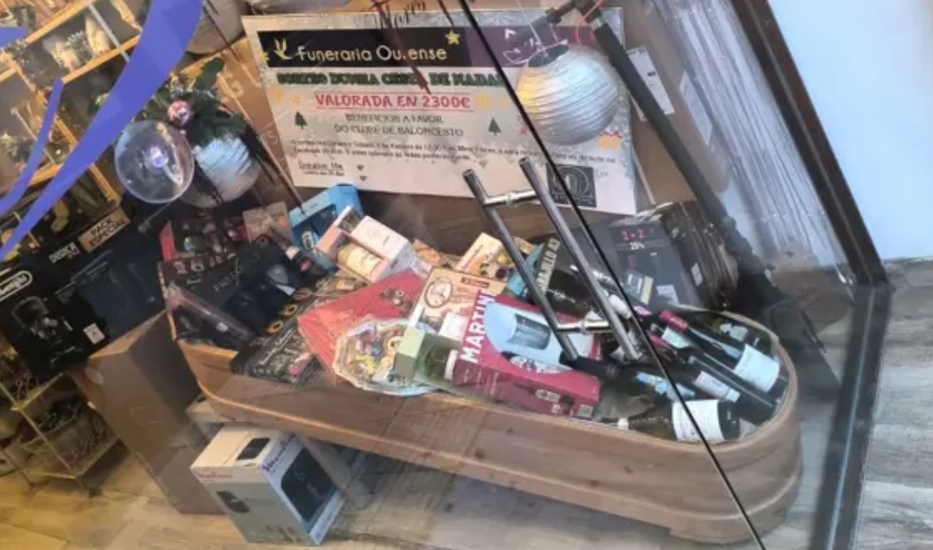 Una funeraria gallega vuelve a sorprender esta Navidad con una iniciativa tan singular como llamativa. La Funeraria Ourense, ubicada en la localidad de Barbadás, ha puesto en marcha nuevamente el sorteo de una original cesta navideña presentada dentro de un ataúd, una propuesta que combina tradición, creatividad y un marcado carácter solidario.
